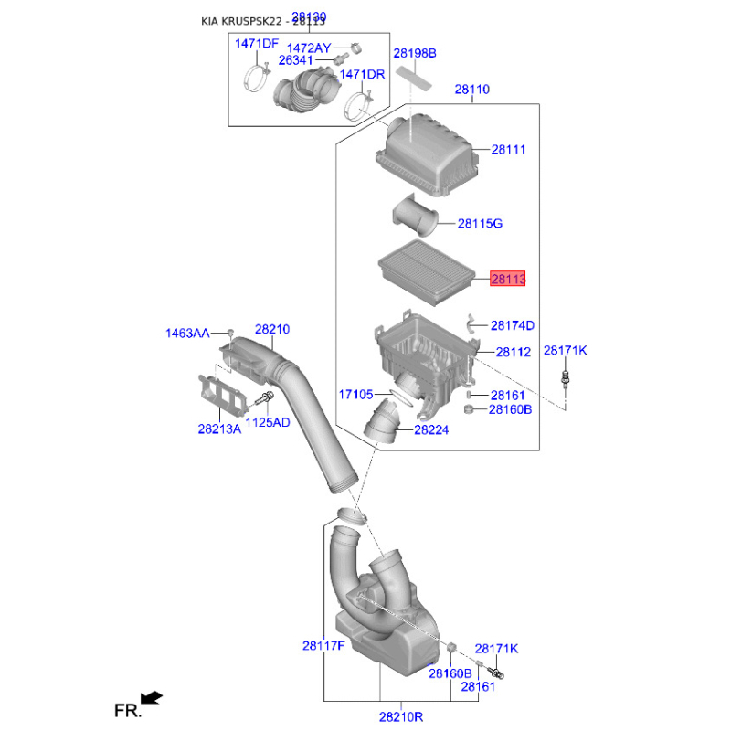 Поиск деталей можно выполнить по оригинальному коду 28113F2000.