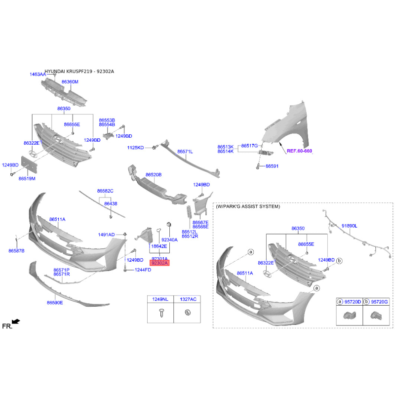 Поиск деталей можно выполнить по оригинальному коду 92302F2500.