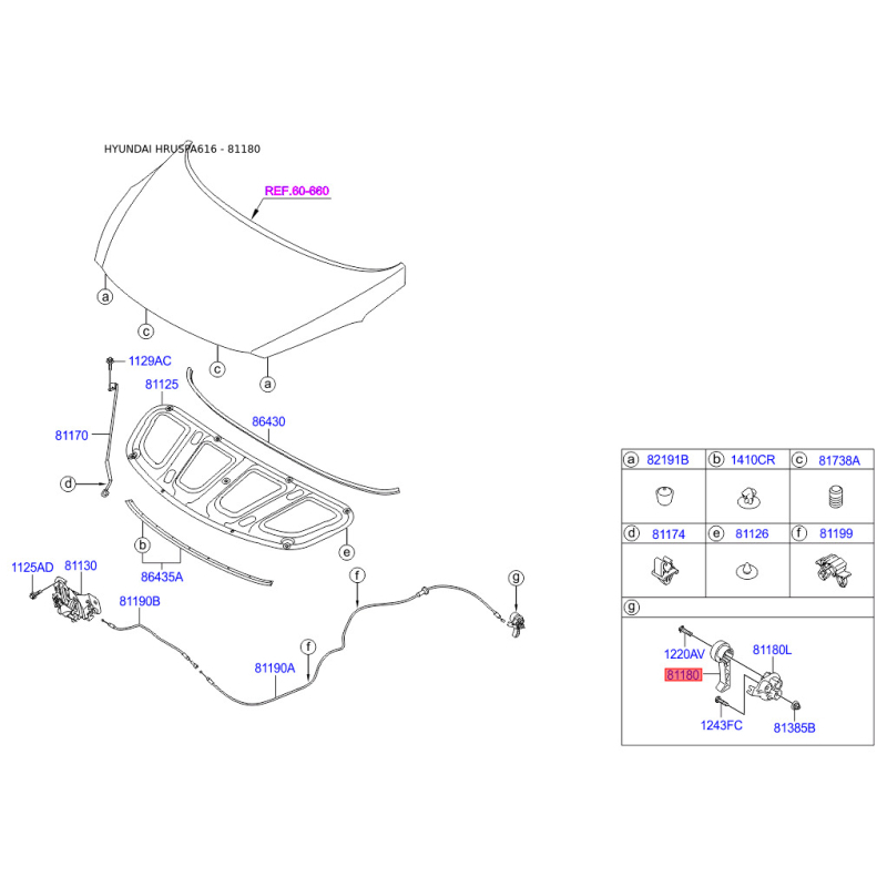 Ручка троса капота и ее крепление 81181-3F000RY Mobis