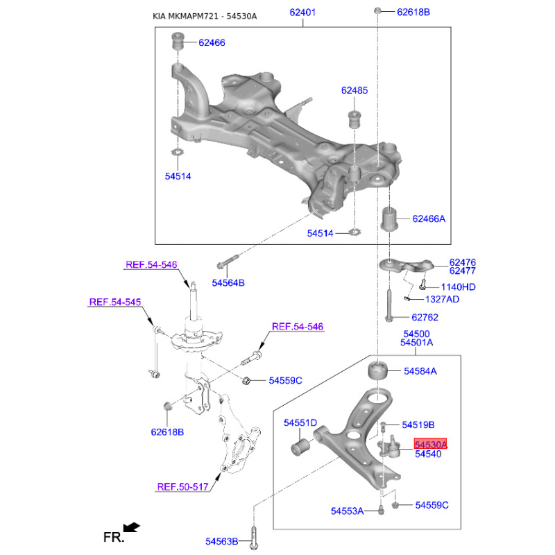 Поиск деталей можно выполнить по оригинальному коду 54530F2000.