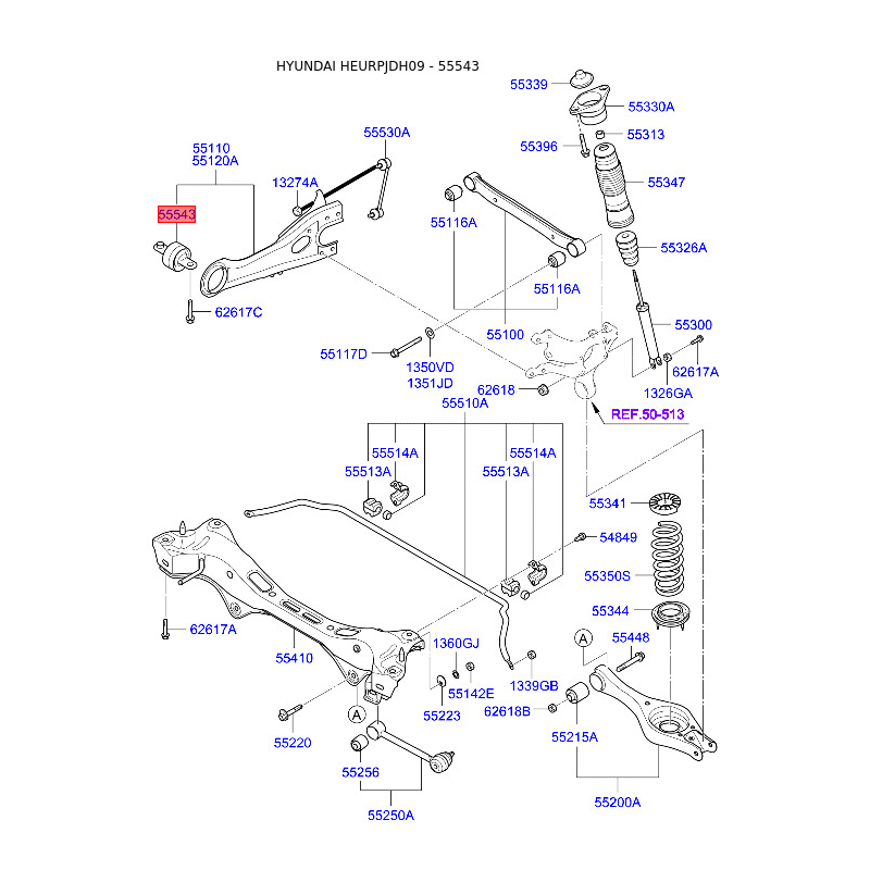 Поиск деталей можно выполнить по оригинальному коду 555432H000.