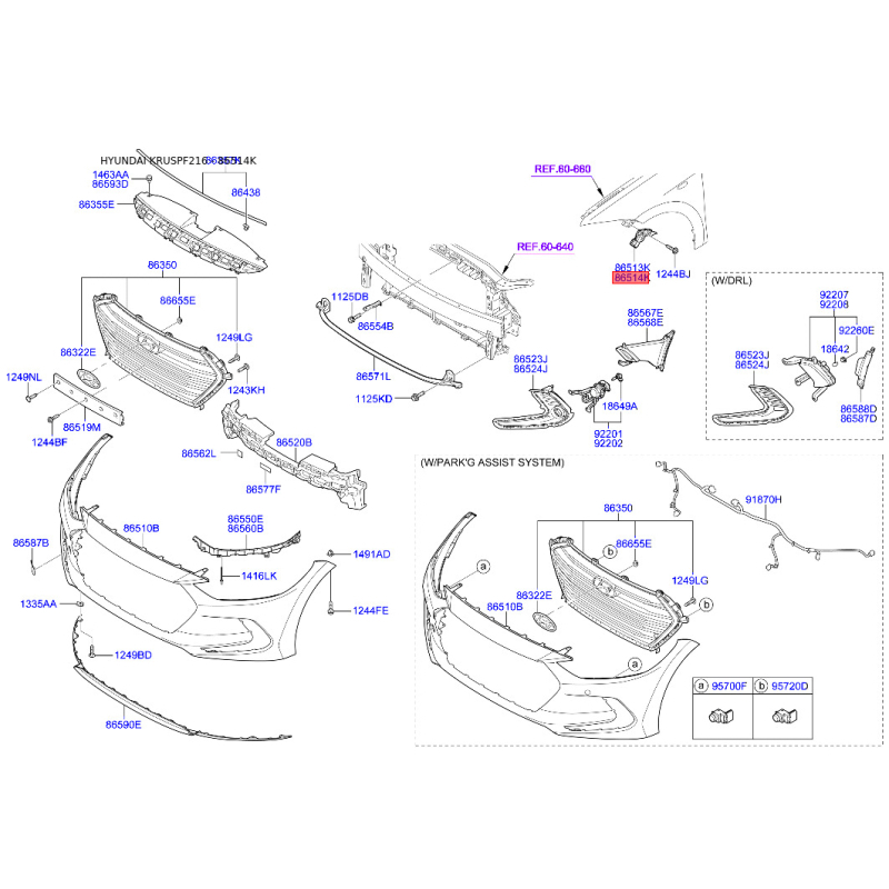 Поиск деталей можно выполнить по оригинальному коду 86514F2000.