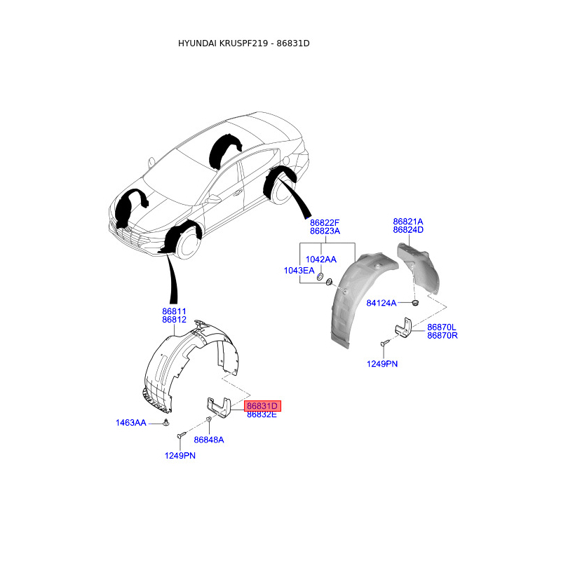 Поиск деталей можно выполнить по оригинальному коду 86831F2000.