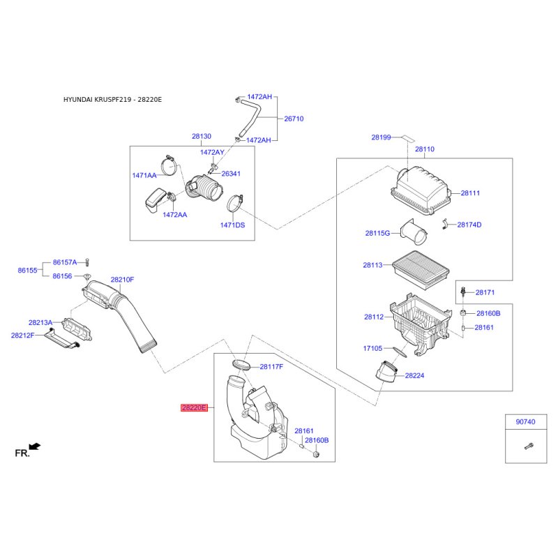 Поиск деталей можно выполнить по оригинальному коду 28220F2000.