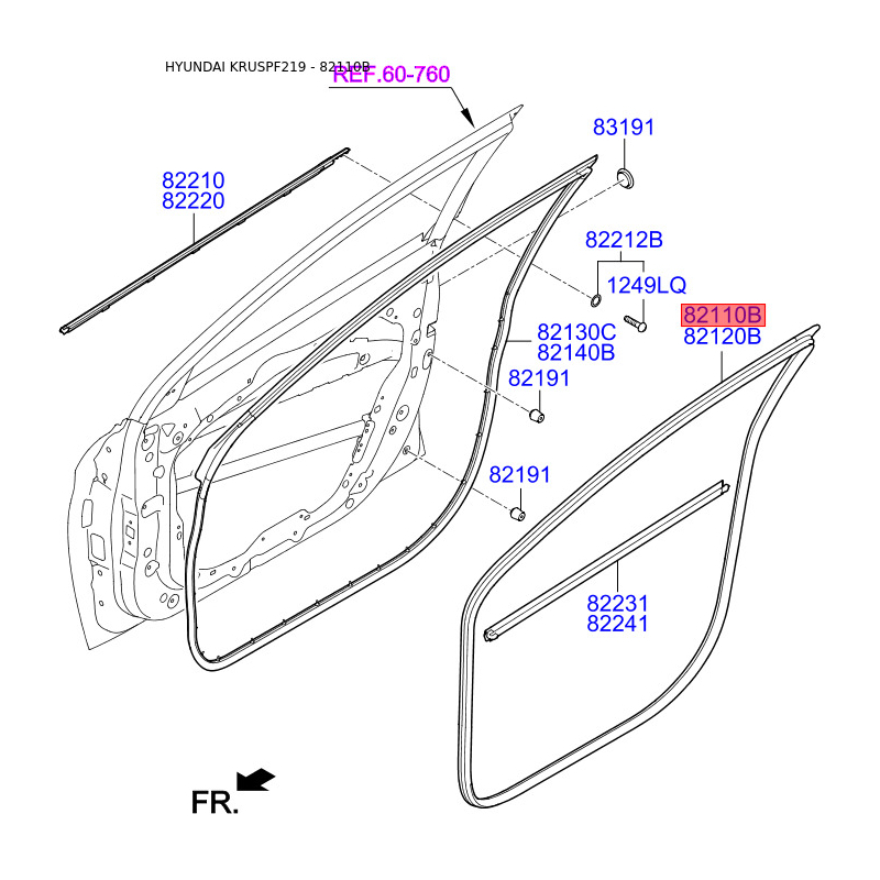 При получении заказа проверяйте комплектацию товара Уплотнитель (уплотнение) двери левый 82110-F20004X Mobis.
