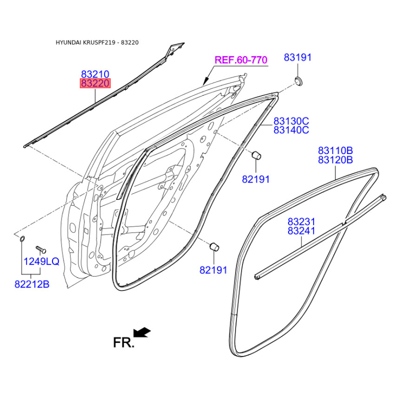 Уплотнитель (прокладка), боковое стекло правый 83220-F2010 Mobis