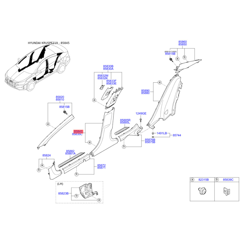 Поиск деталей можно выполнить по оригинальному коду 85845F2000TRY.