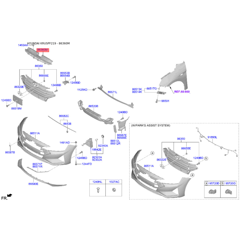 Поиск деталей можно выполнить по оригинальному коду 86360F2AA0.