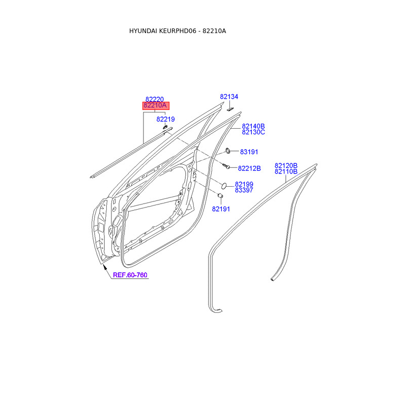 При получении заказа проверяйте комплектацию товара Уплотнитель (уплотнение) двери левый 82210-2H000 Mobis.