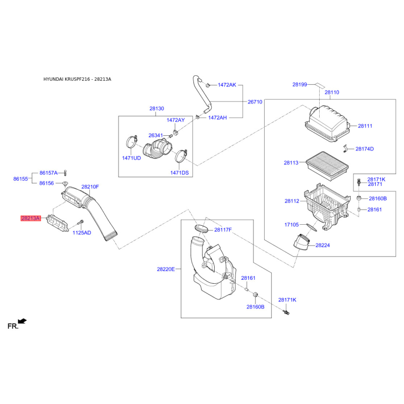 Рукав воздухозаборника, воздушный фильтр 28213-F2000 Mobis