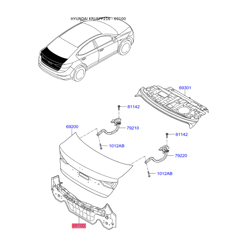 Поиск деталей можно выполнить по оригинальному коду 69100F2000.
