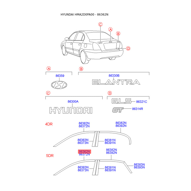 Эмблема задней и боковой двери, капота левая верхняя 86362-2D001 Mobis