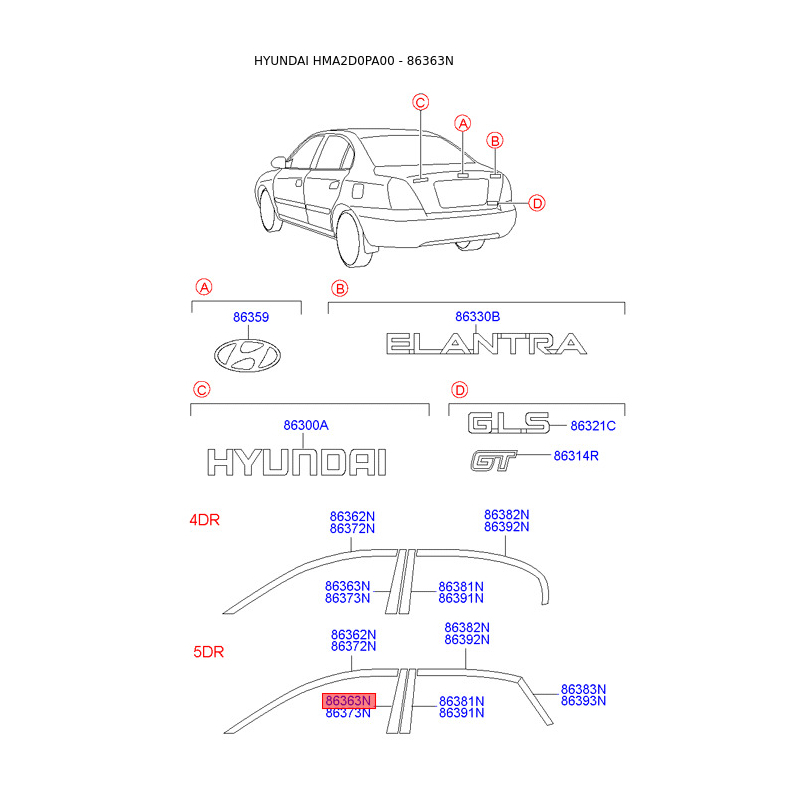 Эмблема задней и боковой двери, капота задняя левая 86363-2D003 Mobis