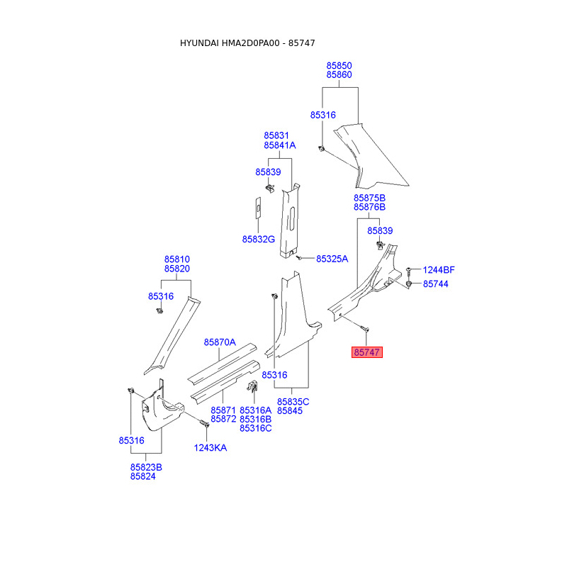 Пистон (клипса) обивки салона 85747-29000LT Mobis