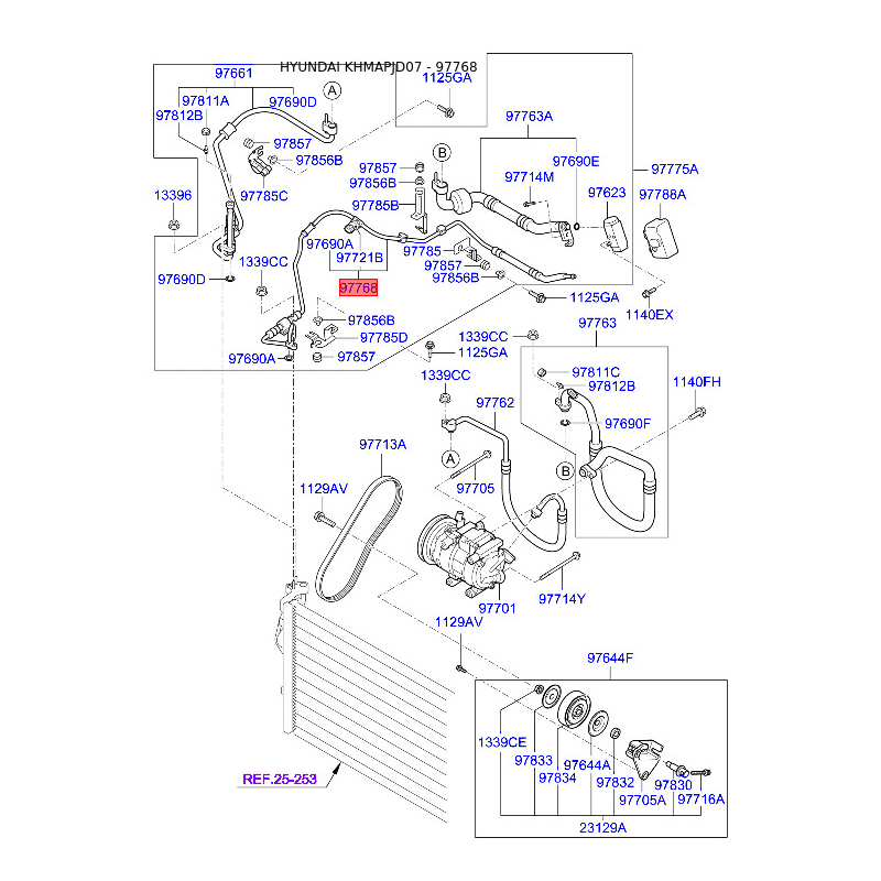 Трубопровод высокого / низкого давления, кондиционер 97768-2L100 Mobis