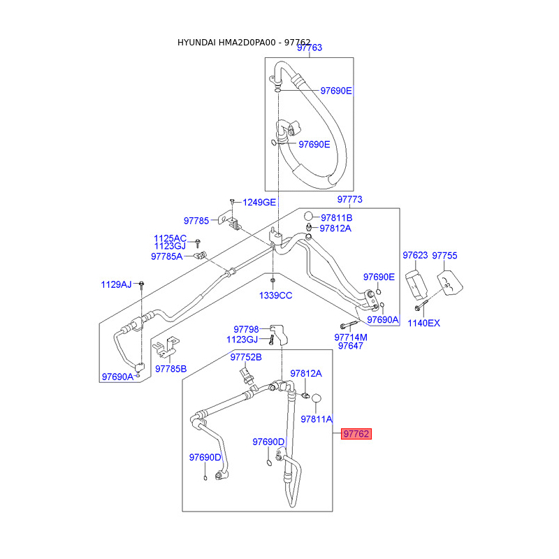 Трубопровод высокого / низкого давления, кондиционер 97762-2D100 Mobis