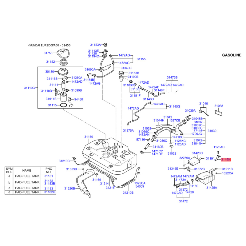 Поиск деталей можно выполнить по оригинальному коду 314503A000.