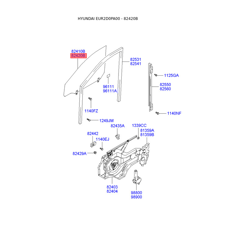Боковое стекло (окно) двери правое 82420-2D041 Mobis