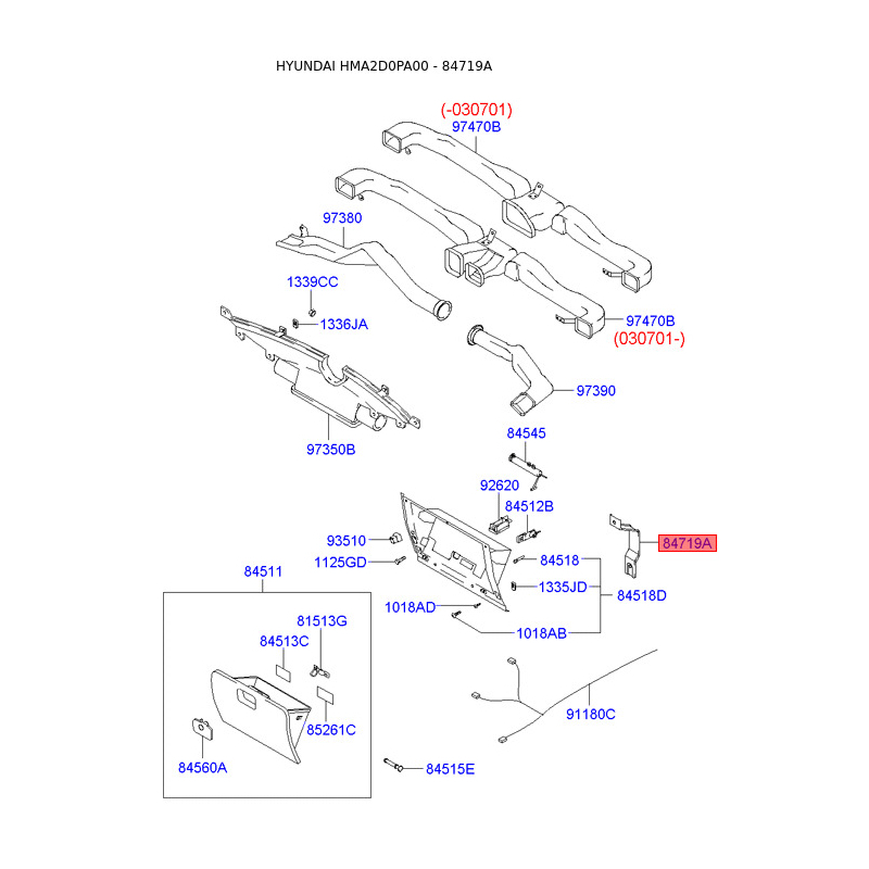 Кронштейн панели приборов (торпеды) 84719-2D000 Mobis