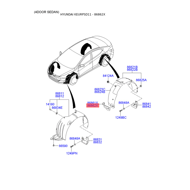 Крепления подкрылка и брызговика правое 86862-3X100 Mobis