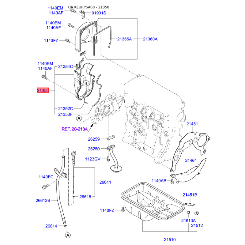 Крышка защитная ремня распредвала нижняя 21350-02200 Mobis