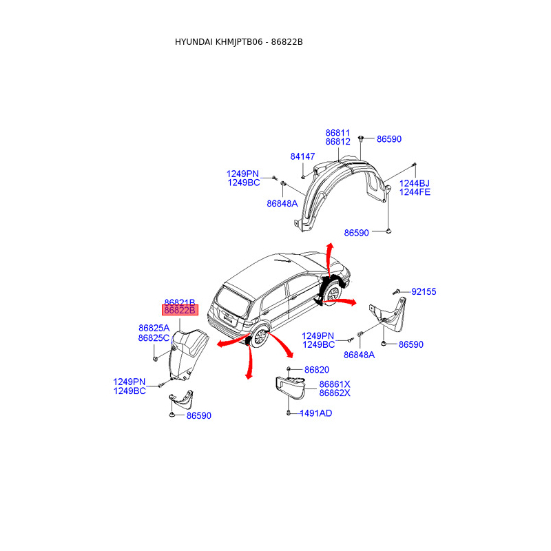 Обшивка (подкрылок), колесная ниша правая 86822-1C500 Mobis