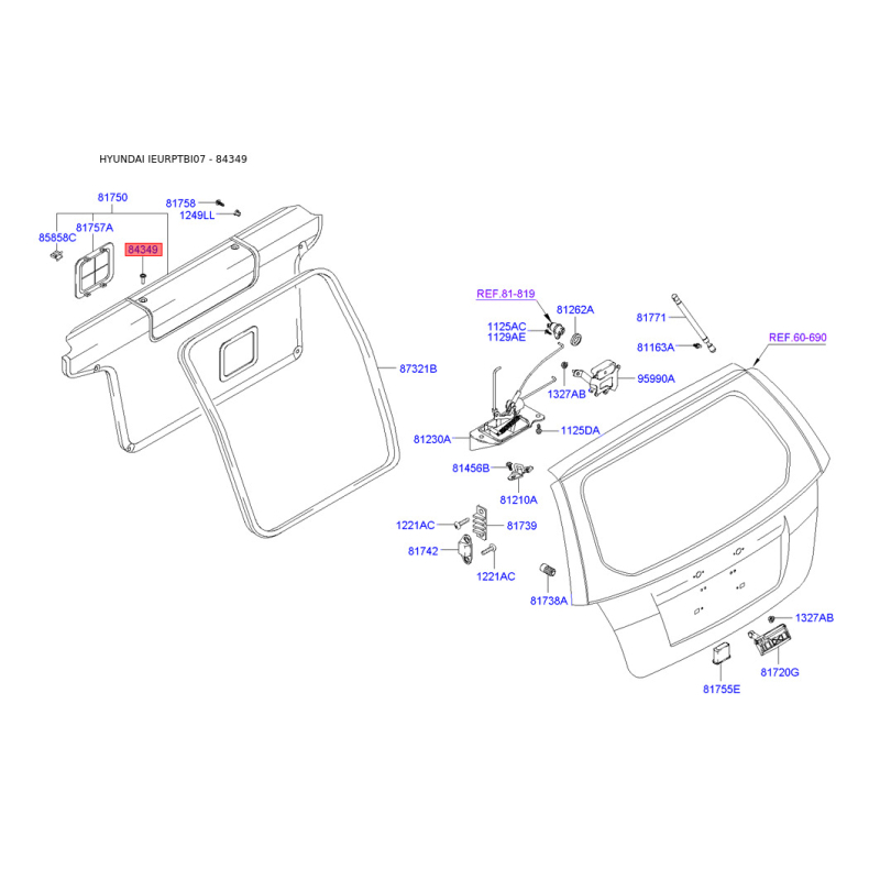 Пистон (клипса) обивки багажника 84349-43000WK Mobis