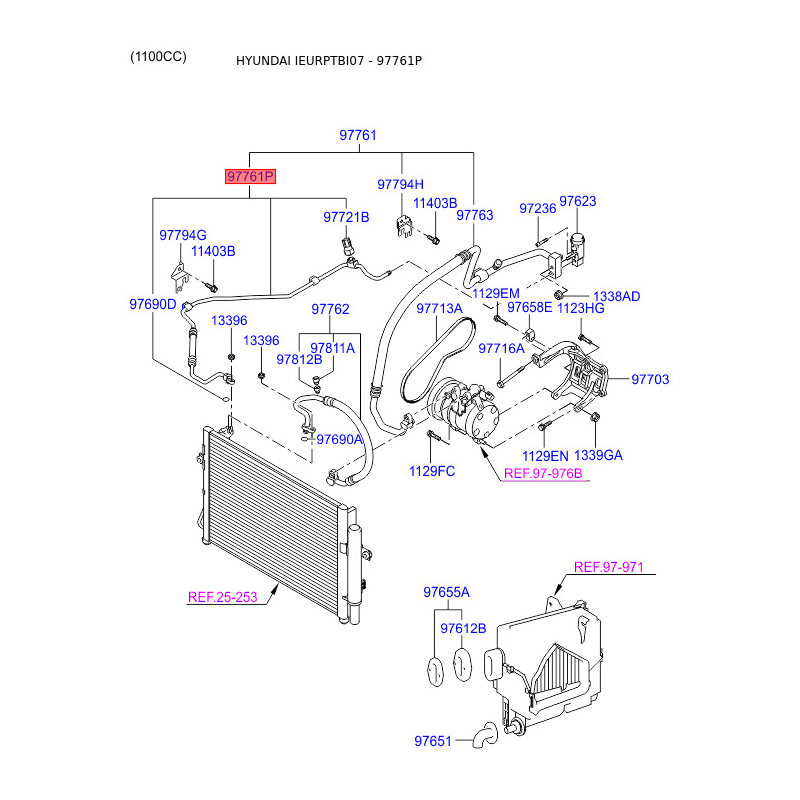 Трубопровод высокого / низкого давления, кондиционер 97761-1C830 Mobis