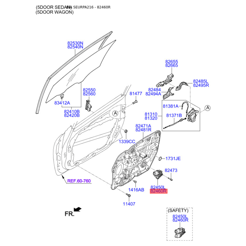 Оригинальный код 82460A5000 полностью совпадает с каталожным номером производителя Mobis.