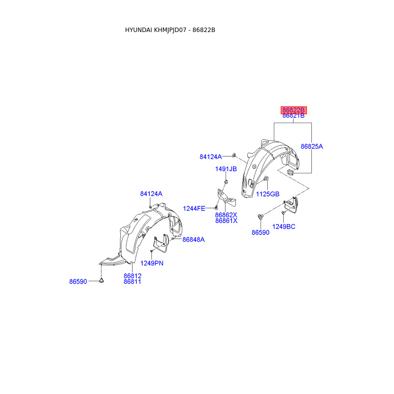 Обшивка (подкрылок), колесная ниша правая 86822-2L000 Mobis