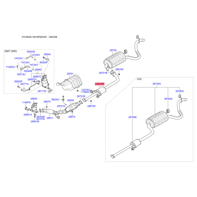 Глушитель выхлопных газов средний 28650-2L810 Mobis