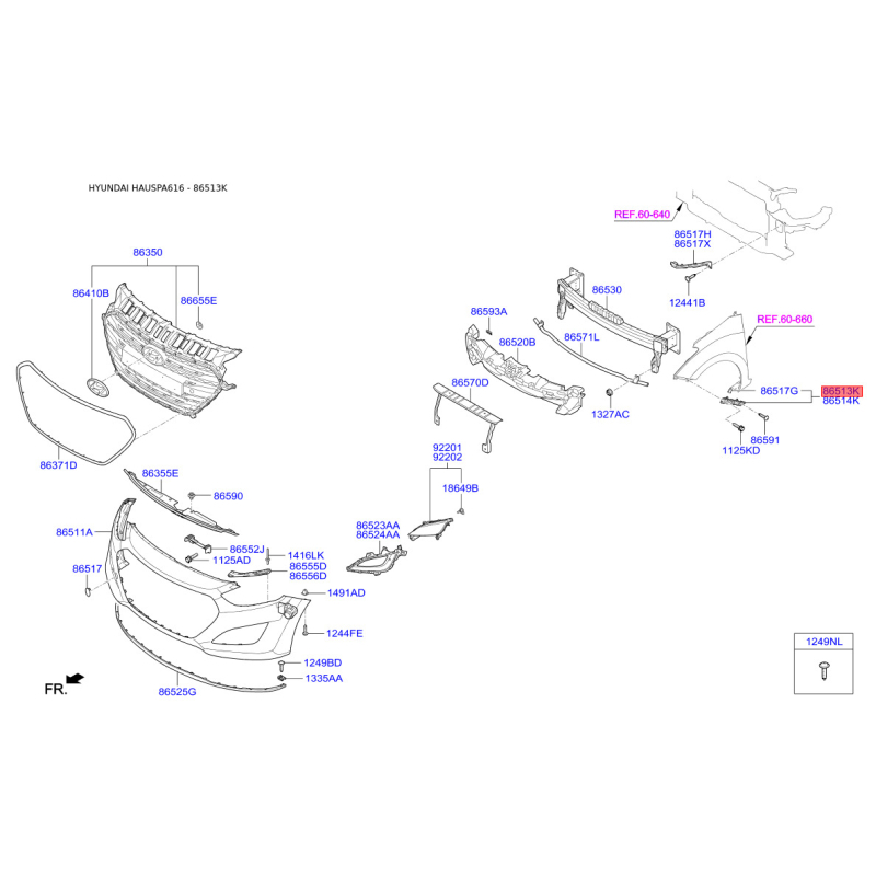 Поиск деталей можно выполнить по оригинальному коду 86513A6000.