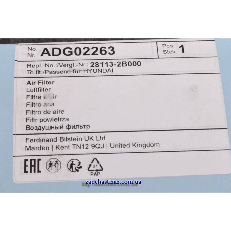 Поиск деталей можно выполнить по оригинальному коду ADG02263.