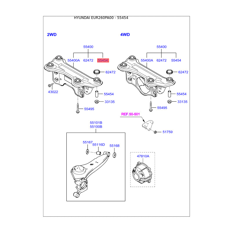 При получении заказа проверяйте комплектацию товара Сайлентблок заднего подрамника (задней балки) опорный, к кузову 55454-3B000 Mobis.