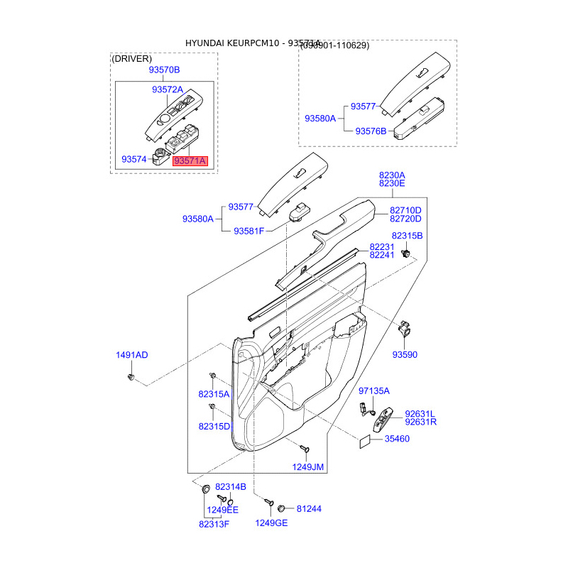 Блок кнопок стеклоподъёмника 93571-2B000 Mobis