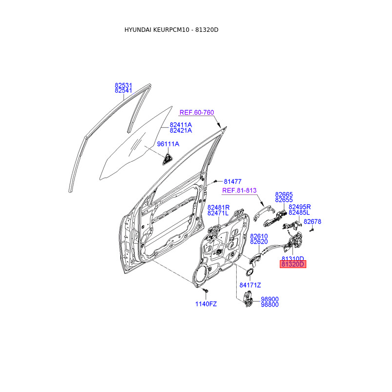 Замок двери правый 81320-2B030 Mobis