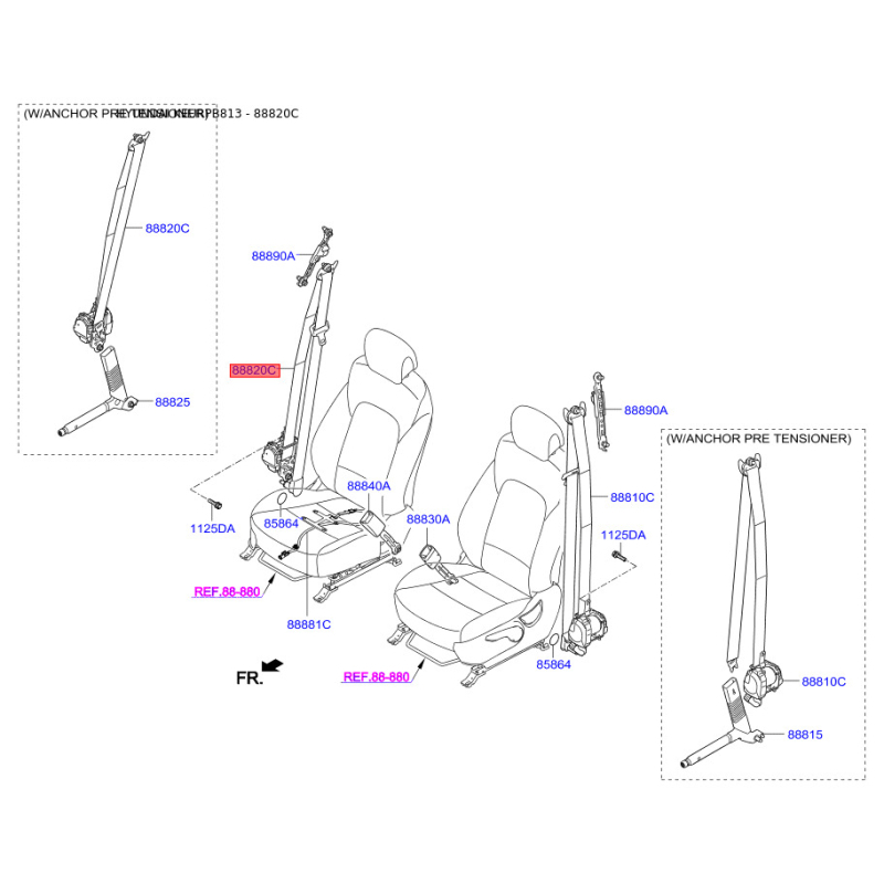 Ремень безопасности правый 88820-B8200RYN Mobis