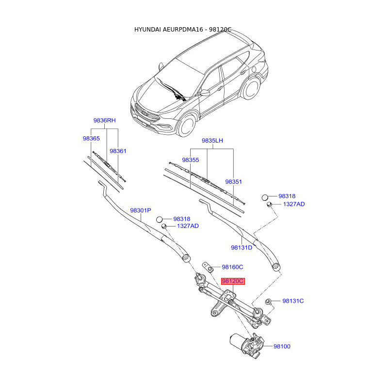 Привод стеклоочистителя, система очистки окон 98120-4Z000 Mobis