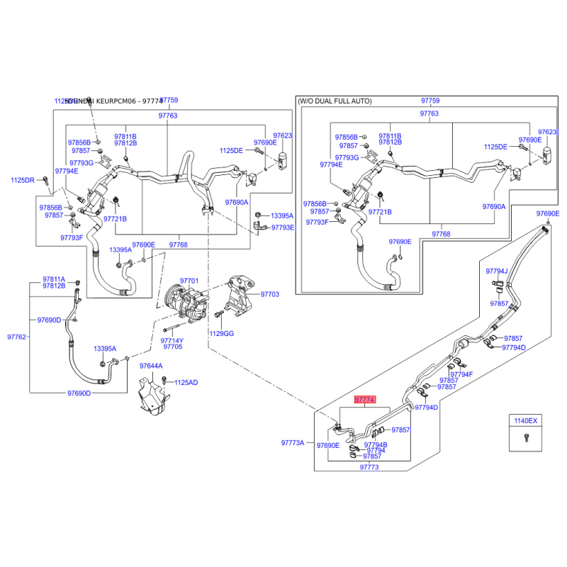 Трубопровод высокого / низкого давления, кондиционер 97774-2B200 Mobis