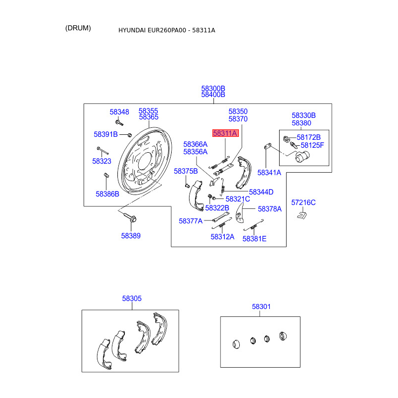 При получении заказа проверяйте комплектацию товара Пружина стяжная нижняя колодок стояночного тормоза верхняя 58311-3A000 Mobis.