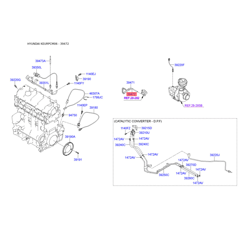 Оригинальный код 3947427800 полностью совпадает с каталожным номером производителя Mobis.