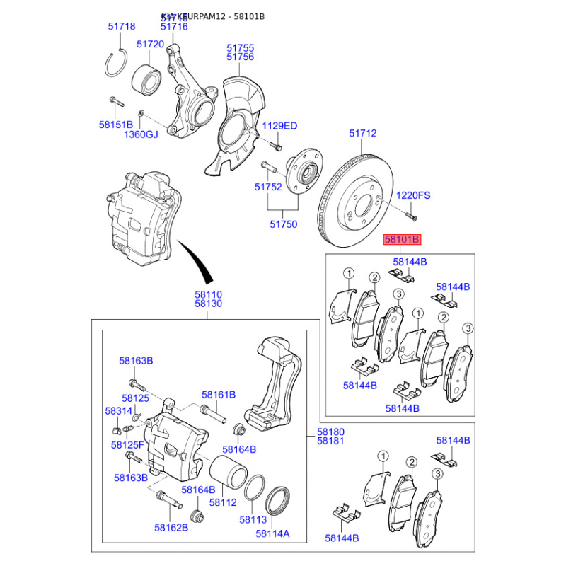 Поиск деталей можно выполнить по оригинальному коду 581012KA10.