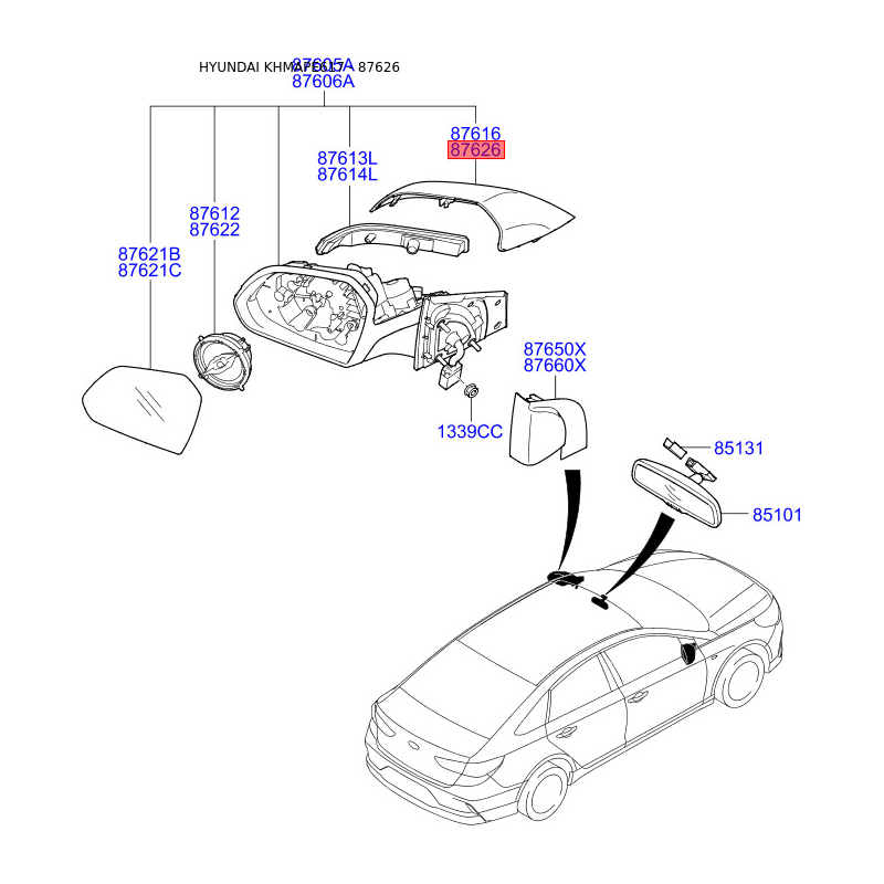 Оригинальный код 87626C1000 полностью совпадает с каталожным номером производителя Mobis.
