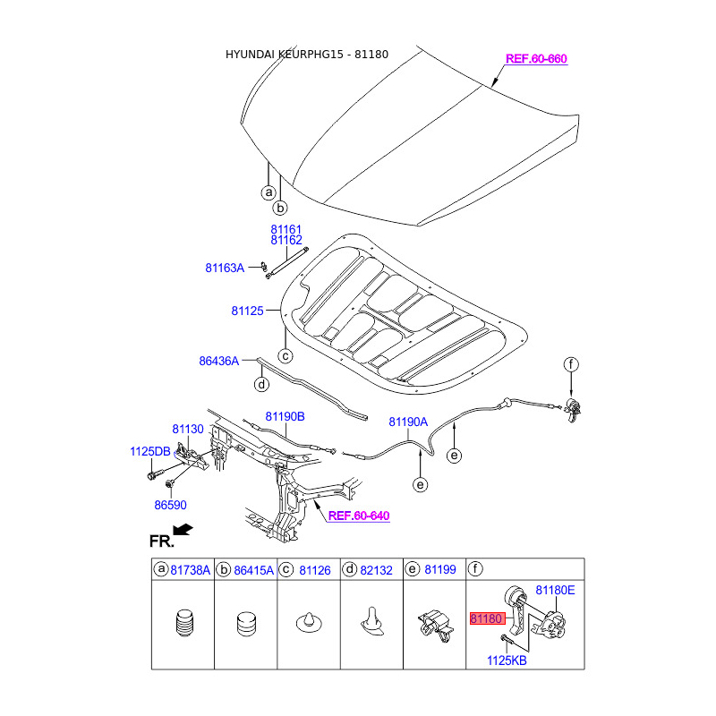 Ручка троса капота и ее крепление 81181-2B000RY Mobis