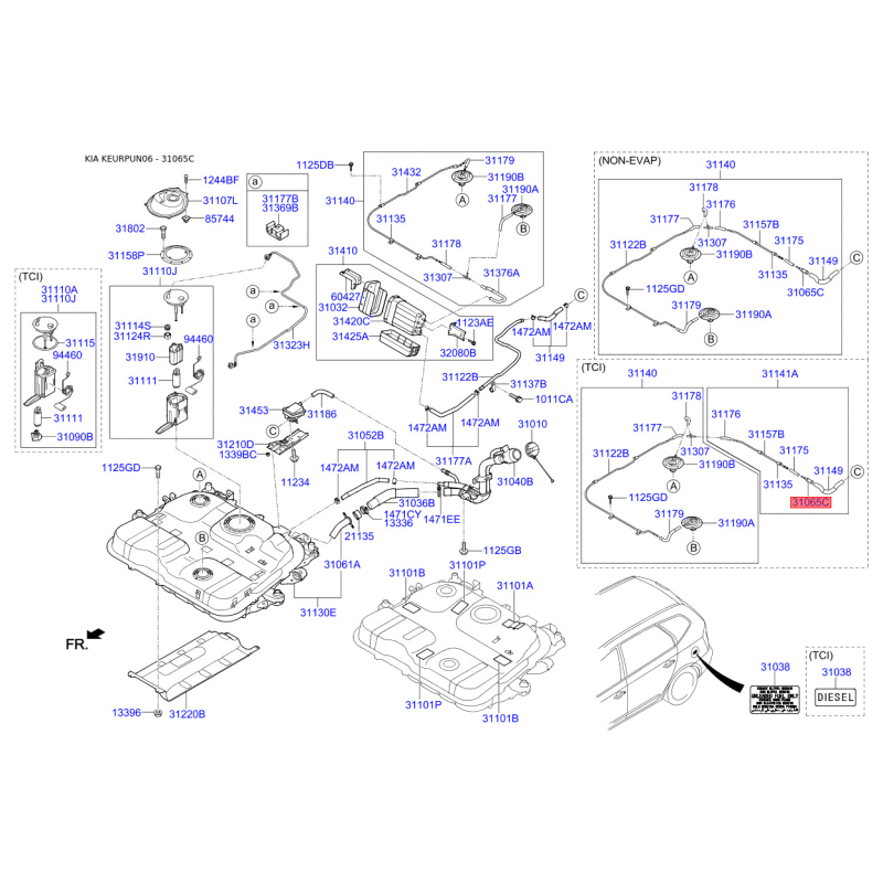 Поиск деталей можно выполнить по оригинальному коду 310653K000.