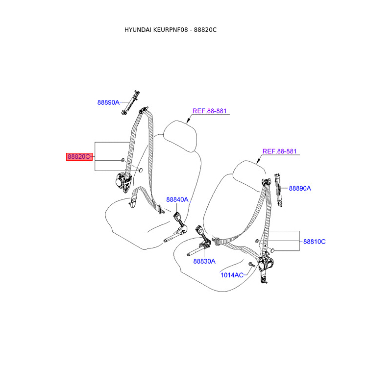 Ремень безопасности правый 88820-3K930X6 Mobis