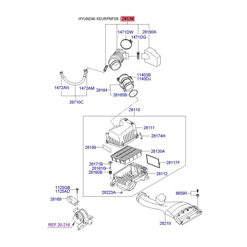 Шланг, система подачи воздуха 28138-3K710 Mobis