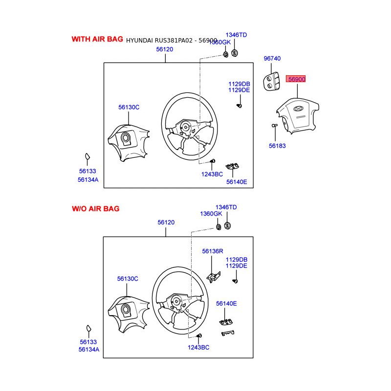 Подушка безопасности на руль 56900-3D000TI Mobis