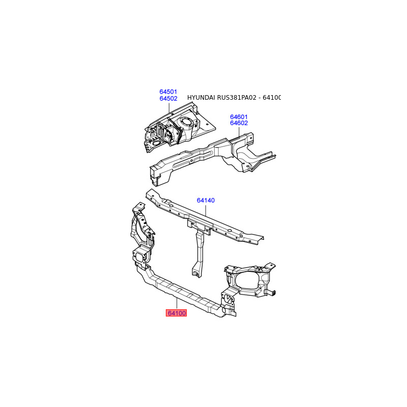 Облицовка передка (передняя панель, морда) 64100-3D100 Mobis