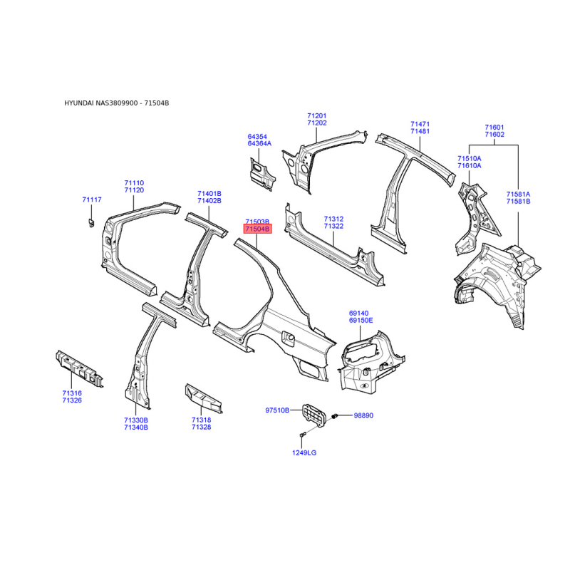 Крыло заднее (или часть боковины) правое 71504-38B10 Mobis